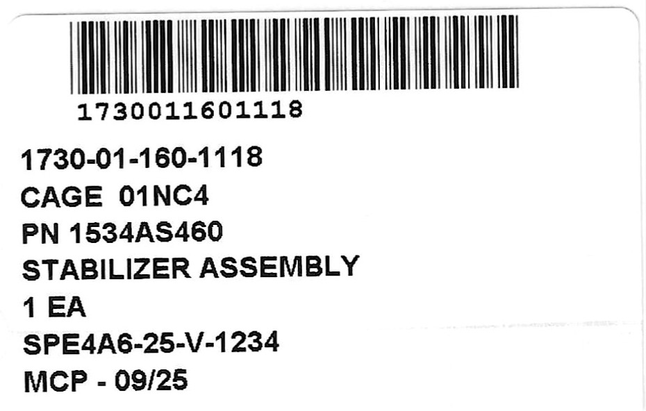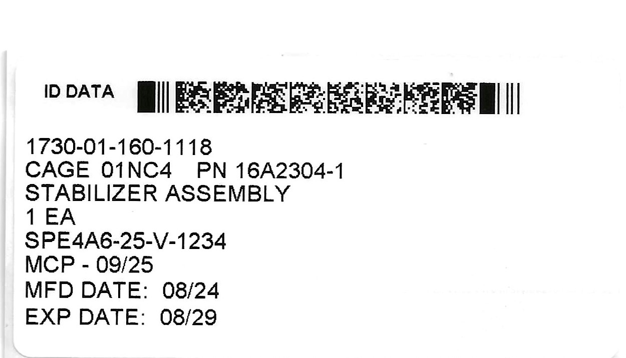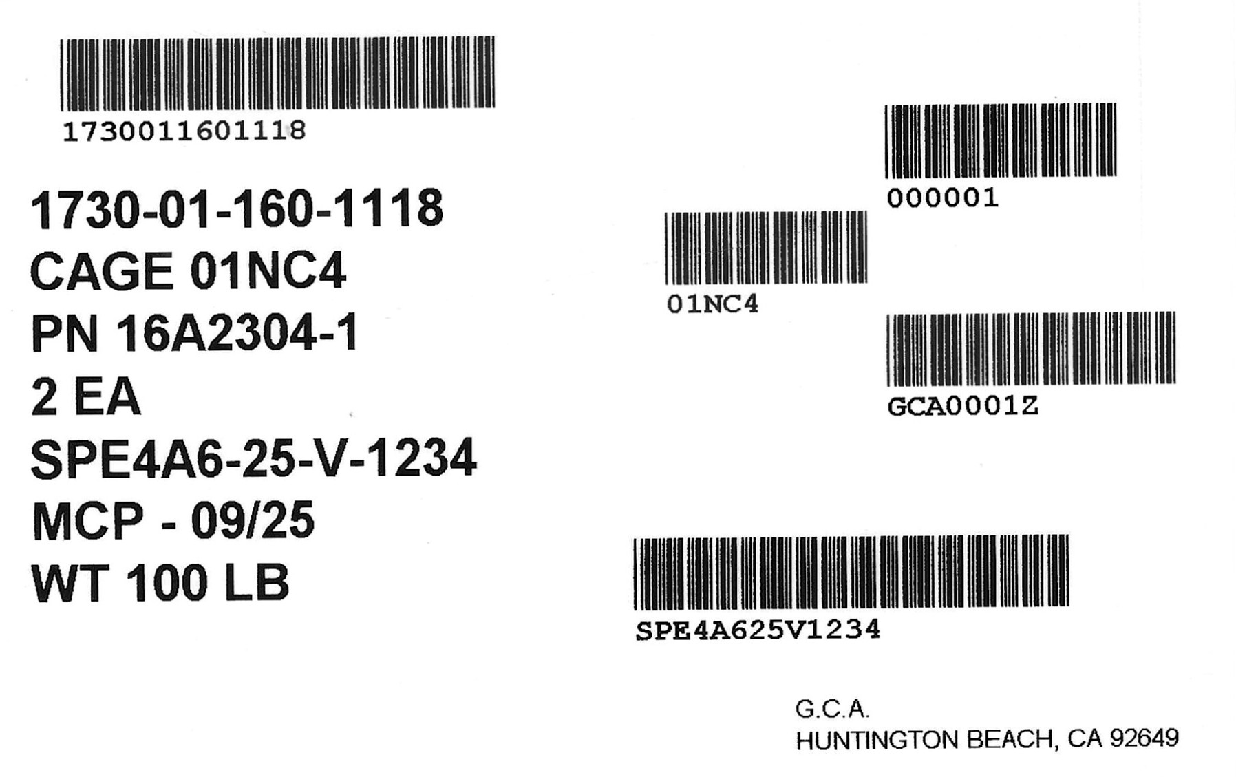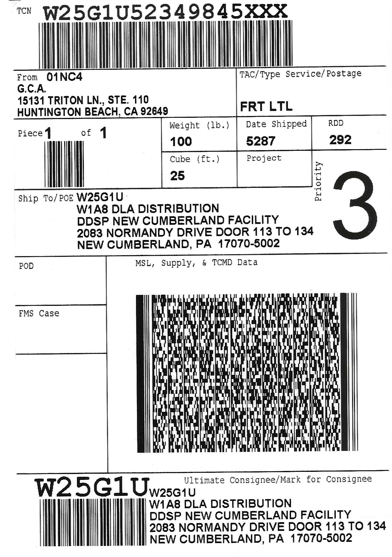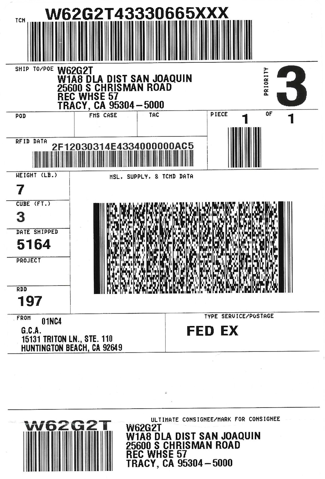 EXTERIOR SHIPPING LABEL Mil-Std-129R Unit I.D.